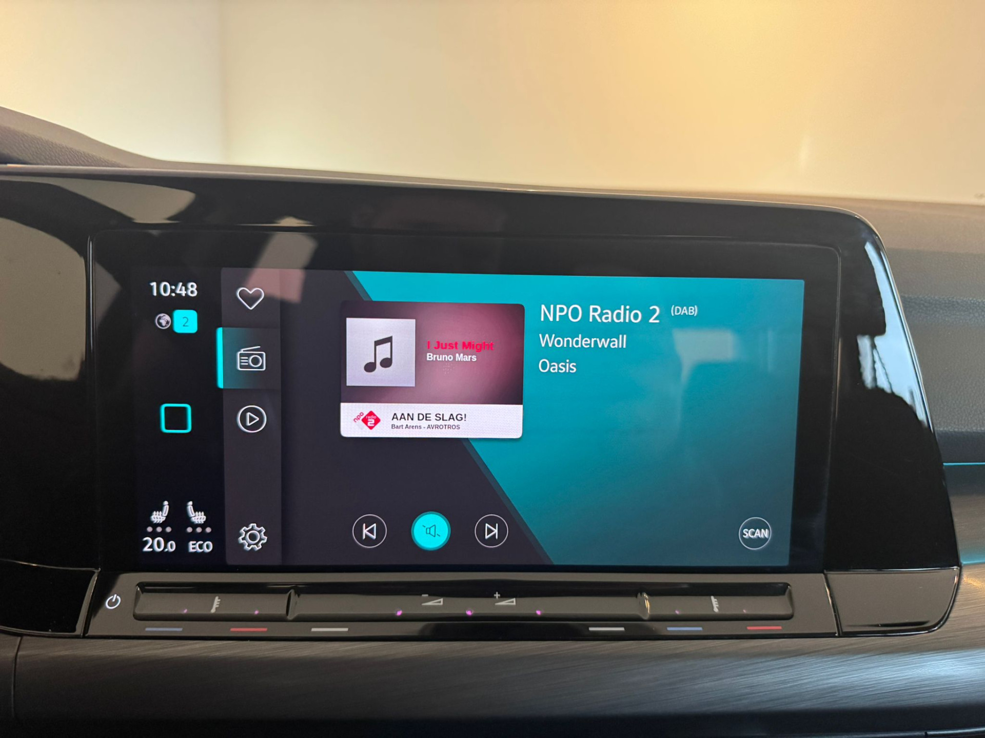 Alle ritinformatie en communicatie is gebundeld in één overzichtelijk digitale dashboard. Als u de adaptive cruise control inschakelt, regelt de auto zelf de snelheid en de afstand tot de auto voor u. Kop aan kont langzaam rijden: dan is afstand houden soms lastig. De file assistent helpt en zorgt automatisch voor veilige ruimte tot de voorligger. Ook als die tot stilstand komt. Handig en veilig: Connected Services. Alle vitale functies en data van de auto checkt u via de app op uw smartphone. Deze Volkswagen is voorzien van knoppen op het stuur om het navigatiesysteem en het audiosysteem te bedienen. Met achteropkomend verkeer waarschuwing, kruisend verkeer detectie, automatische airconditioning, schakelpaddles aan het stuur, draadloos opladen en parkeersensoren voor en achter is deze auto helemaal compleet.