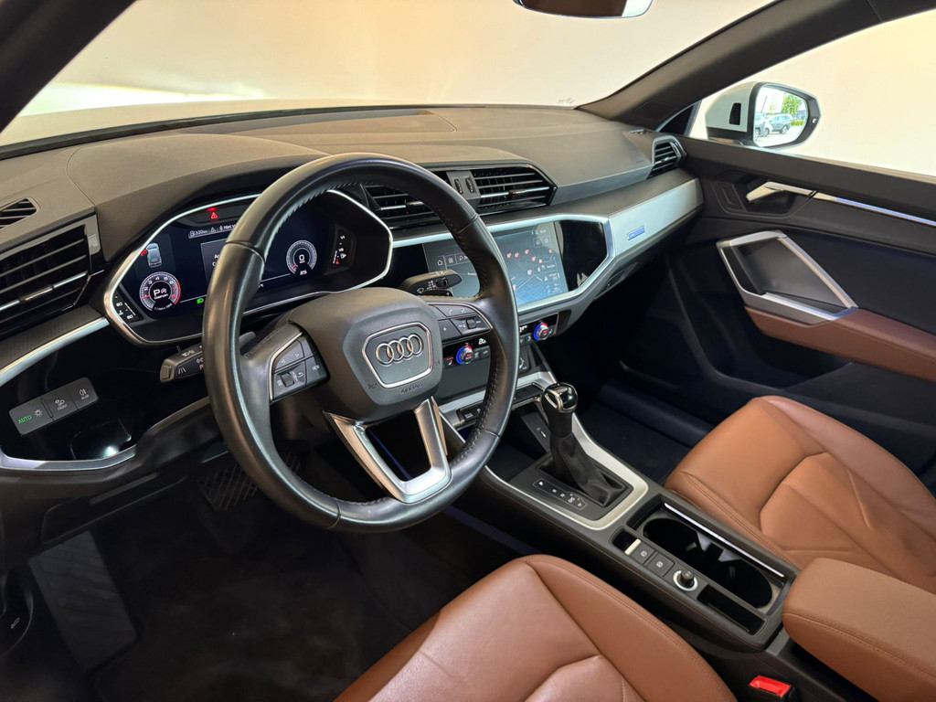 U rijdt gemakkelijk, comfortabel en zonder zorgen met deze Audi Q3. Het is een auto van het bouwjaar 2019, hij heeft 39962 kilometer op de teller staan. Met zijn benzinemotor en automatische transmissie is dit een prima auto voor nog vele kilometers. En o ja, het lederen interieur is ook een vermelding waard! Deze Audi Q3 heeft verwarmbare voorstoelen, voor zowel bestuurder als bijrijder. Opvallend zijn de stoere sportstoelen, die zorgen voor een onwrikbare zit in de scherpe bochten. Met een druk op de knop gaat de elektrische achterklep open. Tot de uitrusting behoren ook 18 inch lichtmetalen velgen, LED koplampen, warmtewerend glas, zwarte hemelbekleding, aluminium dakrailing en elektrisch inklapbare buitenspiegels.